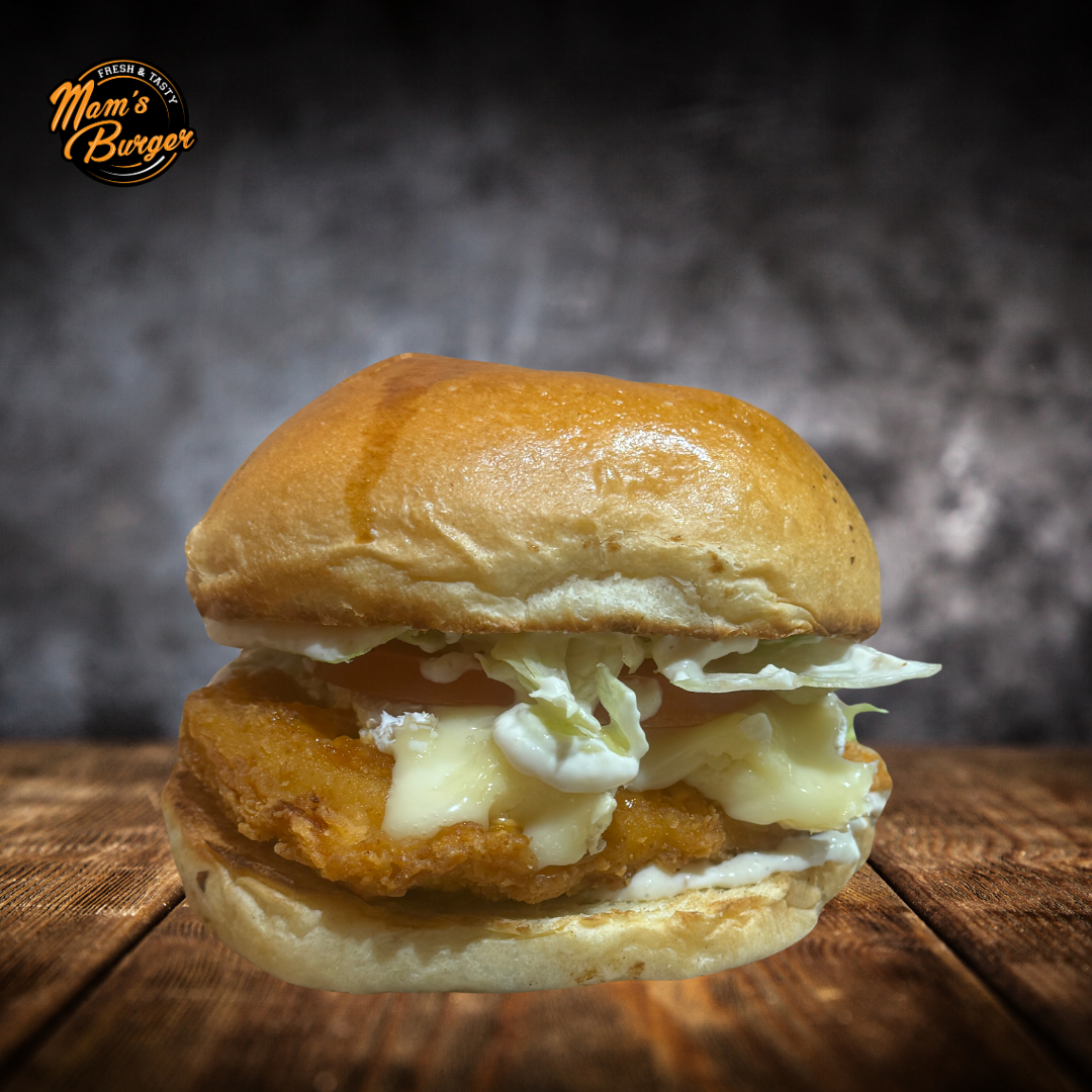 Filet de poulet pané, Brie, Salade, Tomates, sauce ranch maison.